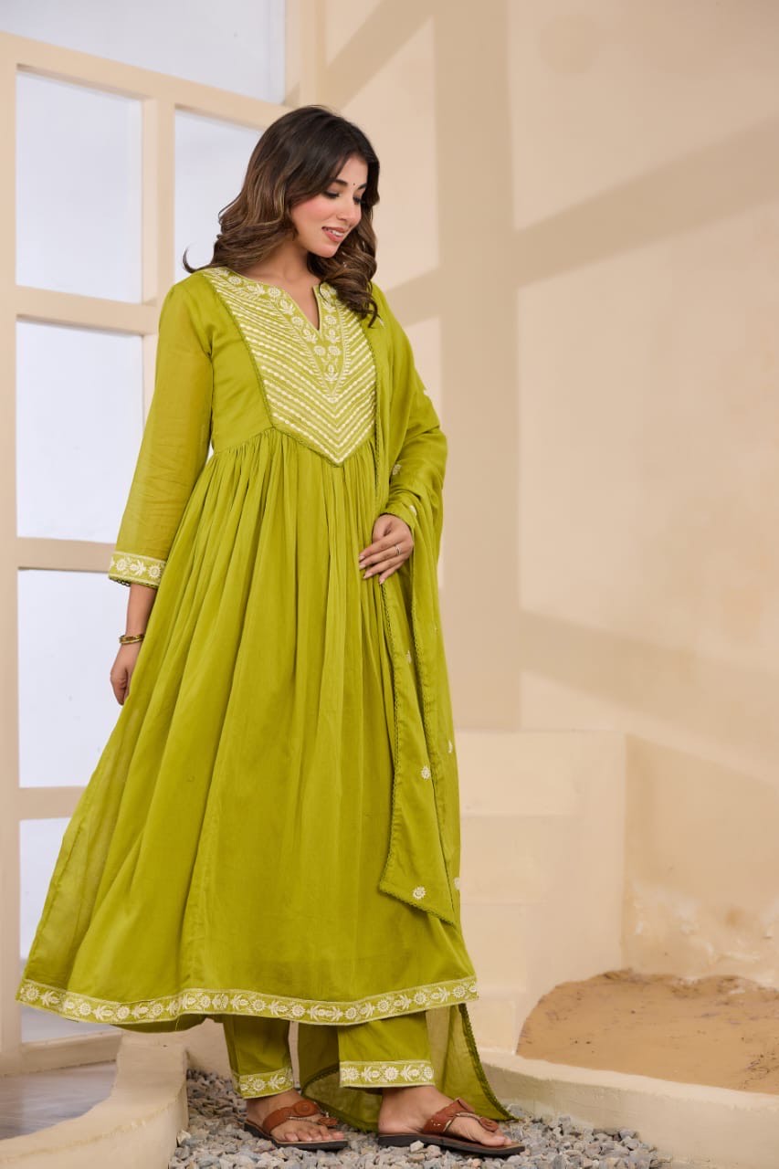 Be the first to review “Lime Green Floral Embroidered Straight Kurta With Trouser & Dupatta”