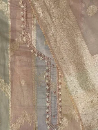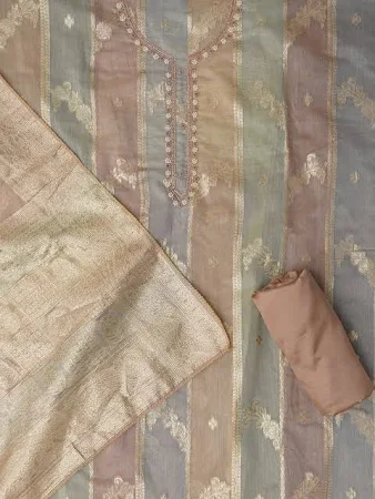 Unstitched Woven Design Silk Blend Dress Material with Dupatta